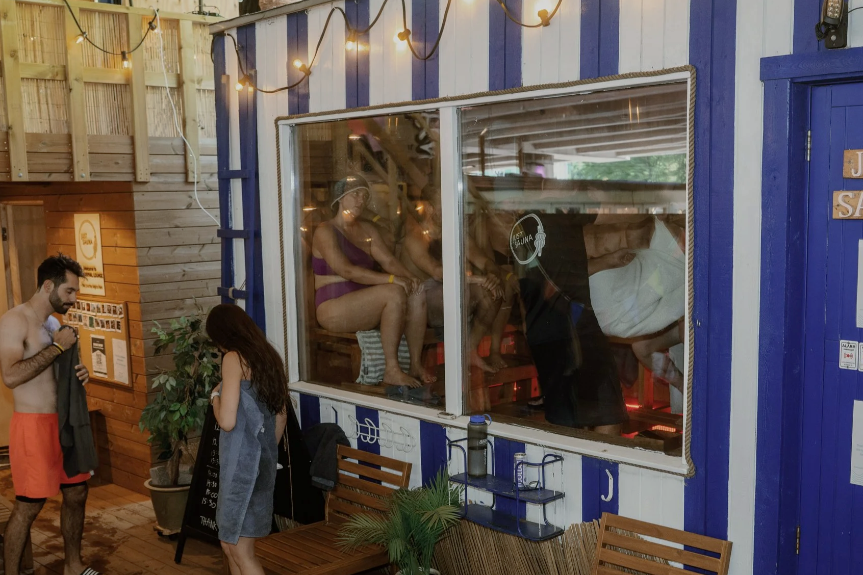 Under Buen: Her skal du have badetøj på udover altid at medbringe et stort håndklæde at sidde på inde i saunaen.